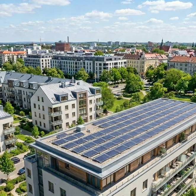 Netto-Null-Standard und hohe Energieeffizienz gehören für uns zum Wohnungsbau der Zukunft - für dauerhaft niedrige Emmissionen und Nebenkosten.